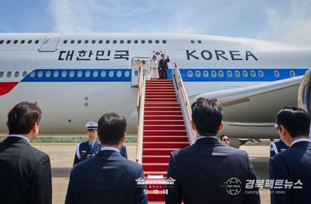 경북팩트뉴스 황혜경 기자 | 이재명 대통령과 김혜경 여사는 5박 6일 일정의 인도 및 베트남 국빈 방문을 위해 19일 경기 성남 서울공항에서 대통령 전용기(공군 1호기)를 이용해 출국했다.