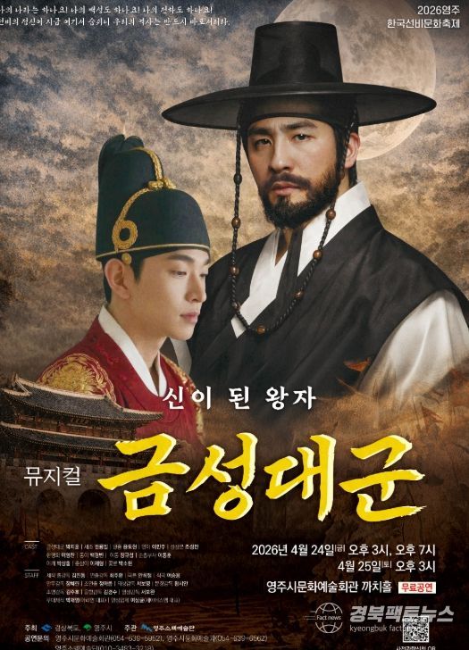 한편, ‘신이 된 왕자, 뮤지컬 '금성대군'’은 ‘영주 한국선비문화축제’와 연계한 사전 공연으로, 축제 개막에 앞서 기대감을 한층 높일 예정이다.