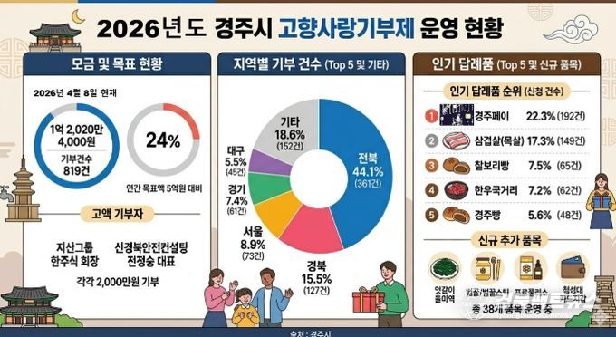 최혁준 경주시장 권한대행은 “고향사랑기부제는 지역과 기부자가 상생하는 제도”라며 “기부 참여 확대와 답례품 다양화를 통해 지역경제 활성화에 기여하겠다”고 말했다.