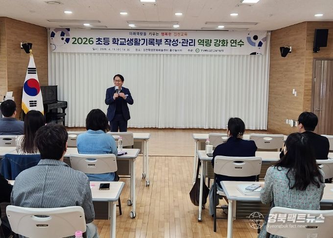 경북팩트뉴스 남유신 기자 | 경상북도김천교육지원청은 2026년 4월 15일(수) 김천학생문화예술센터에서 관내 초등학교 학교생활기록부 업무담당자 및 희망 교사 30명을 대상으로 '2026 초등 학교생활기록부 작성・관리 역량 강화 연수'를 실시했다.