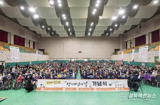 경북팩트뉴스 남유신 기자 | 칠곡군장애인단체연합회(회장 조정수)는 지난 18일 칠곡국민체육센터에서 한영희 칠곡부군수와 기관·단체장, 장애인단체 및 시설 관계자, 회원, 가족, 자원봉사자 등 700여명이 참석한 가운데 ‘제11회 칠곡군 장애인의 날 기념식’을 성황리에 개최했다.