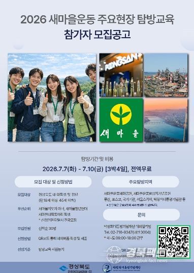 경북팩트뉴스 남유신 기자 | 경상북도와 박정희대통령기념재단은 청년세대의 새마을운동에 대한 이해도를 높이고 가치 확산을 위해 ‘2026 새마을운동 주요현장 탐방교육’을 운영하고 참가자를 모집한다.