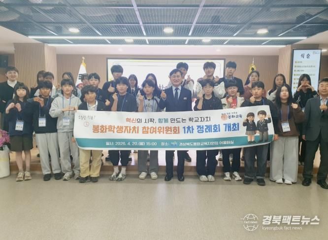 경북팩트뉴스 남유신 기자 | 경상북도봉화교육지원청은 2026년 4월20일 봉화교육청 3층 어울림실에서 관내 초·중·고 학생회장 24명이 참석한 가운데 2026 봉화 학생자치참여위원회 1차 정례회를 개최하고, 새로운 위원회를 구성했다.