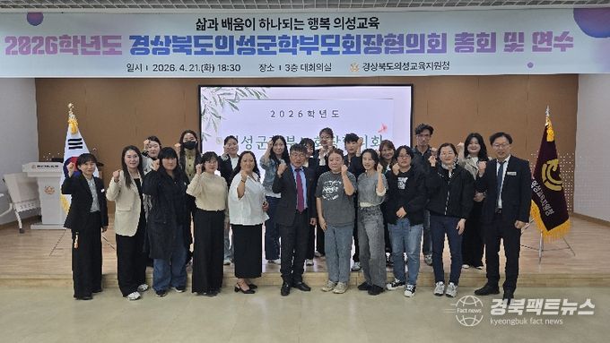 경북팩트뉴스 남유신 기자 | 경상북도의성교육지원청은 2026년 4월 21일(화)에 의성교육지원청 3층 대회의실에서 관내 초·중·고등학교 학부모회장이 참석한 가운데 ‘2026학년도 의성군학부모회장협의회 총회’를 개최하고 본격적인 활동을 시작했다.