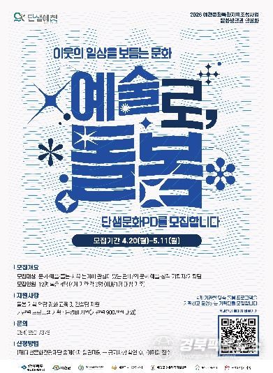 단샘문화PD 모집은 5월 11일 오후 6시까지이며, 지원서는 이메일 또는 방문 접수를 통해 제출하면 된다. 자세한 공고 내용과 신청 양식은 예천문화관광재단에서 확인할 수 있다.