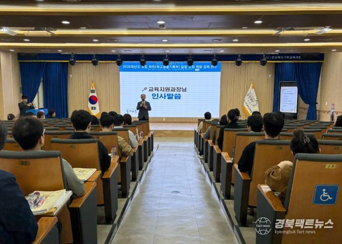 경북팩트뉴스 조현묵 기자 | 경상북도구미교육지원청은 2026년 4월 22일 구미교육지원청 1층 다목적강당에서 관내 초등학교 학교생활기록부 및 학적 담당 교원 52명을 대상으로 『2026 초등학교 학적(학교생활기록부) 담당 교원 역량 강화 연수』를 실시했다.