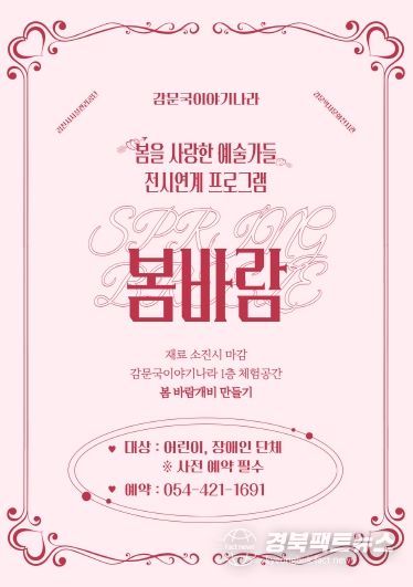 경북팩트뉴스 남유신 기자 | 김천시시설관리공단은 감문역사문화전시관에서 전시 ‘봄을 사랑한 예술가들’과 연계한 단체체험프로그램 ‘봄바람’을 운영 중이라고 밝혔다.