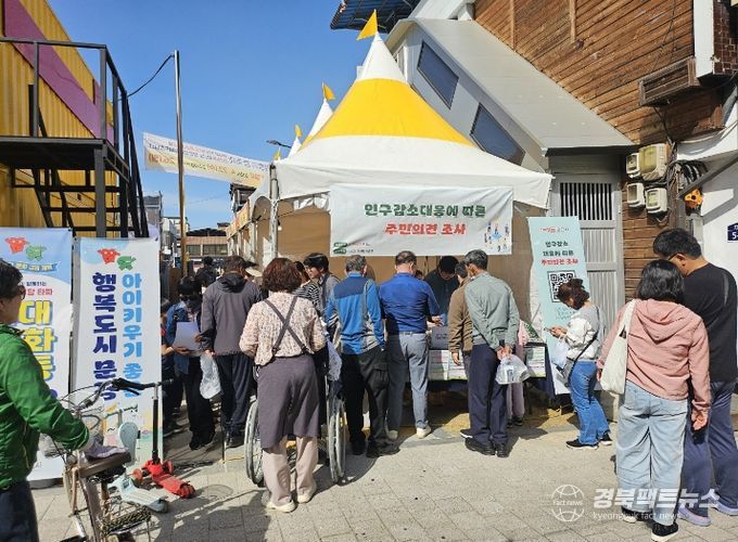 현장에서는 온라인(QR코드·태블릿)과 오프라인(설문지 작성) 방식을 병행한 설문조사를 실시했다. 설문은 시민용과 타지역 거주민용으로 구분해 각 집단의 특성과 정책 수요를 반영한 맞춤형 의견수렴이 이루어지도록 했으며, 참여자에게는 소정의 기념품을 제공해 자발적인 참여를 유도했다. 결혼·출산 지원, 청년 일자리, 생활 인프라 확충 등 주요 인구정책 전반에 대한 시민들의 관심도 높게 나타났다.