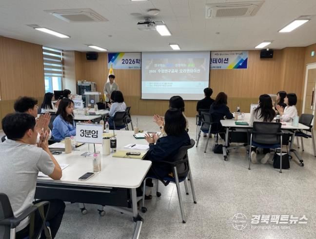 정수권 교육장은 “이번 오리엔테이션을 시작으로 11월까지 이어지는 긴 여정 동안, 우리 선생님들이 ‘연구하는 교사’로서의 역량을 마음껏 펼쳐 주시길 기대한다”라며, “경산교육지원청은 학교 현장에 배움의 깊이를 더하는 긍정적인 변화가 일어날 수 있도록 행정적·재정적 지원을 아끼지 않겠다”라고 밝혔다.