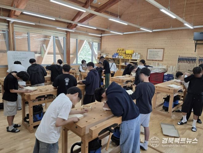 경북팩트뉴스 남유신 기자 | 상주시 성주봉자연휴양림의 상주목재문화체험장과 힐링센터에서는 지난 4월 27일 안동경덕중학교 학생들 150여명을 대상으로 목재문화체험장과 힐링센터에서 독서대 만들기 체험과 숲 해설 체험을 진행했다.