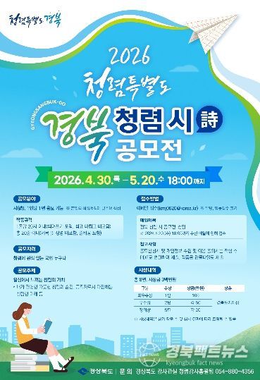 경북팩트뉴스 남유신 기자 | 경상북도는 일상 속 청렴에 대한 국민의 다양한 생각을 시로 나누는 ‘청렴특별도 경북 청렴 시(詩) 공모전’을 개최한다.