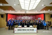 경북팩트뉴스 남유신 기자 | 2026년 붉은 말의 해(병오년)를 맞아 힘찬 시작과 새로운 도약을 다짐하는 ‘김천시 신년 인사회’가 7일 오후 2시 시청 3층 강당에서 성황리에 개최됐다. 김천청년회의소가 주최·주관한 이날 인사회는 김천시를 대표하는 각계인사들이 한자리에 모여 시민의 안녕과 김천 발전을 기원하는 자리로 마련됐다. 이날 행사에는 배낙호 김천시장, 송언석 국회의원, 나영민 시의회 의장을 비롯한 시의원 및 도의원 등 김천시를 대표하는 인사 200여 명이 참석했으며, 행사는 김천시립국악단의 식전 공연을 시작으로 국민의례, 상견례(덕담), 신년 인사, 시루떡 절단, 기념 촬영 순으로 진행되어 화합과 결속의 의미를 더했다. 배낙호 김천시장은 “우리 시 신년 화두는 ‘이청득심(以聽得心)’으로, 귀 기울여 들음으로써 모두의 마음을 얻는다는 뜻이다. 2026년 시민의 목소리에 더욱 귀 기울이고 소통에 힘써 변화와 혁신을 이어가겠다.”라고 새해의 힘찬 출발을 다짐했다.