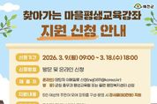경북팩트뉴스 남유신 기자 | 예천군은 3월 9일부터 3월 18일까지 2026년 ‘찾아가는 마을평생교육강좌’ 참여 희망자를 모집한다. ‘찾아가는 마을평생교육강좌’는 5명 이상의 군민이 학습모임을 구성해 희망 강좌를 신청하면, 예천군이 강사료를 지원해 마을과 생활권 가까이에서 평생학습을 받을 수 있도록 지원하는 사업이다. 특히 지난해 본 사업을 통해 군민들의 높은 관심과 적극적인 참여 속에 다양한 분야의 강좌가 운영되며 학습 접근성을 크게 높였고, 주민이 주도하는 학습 문화 확산과 마을 공동체 활성화에 기여하며 큰 호응을 얻었다. 이에 예천군은 군민들의 학습 수요 증가와 참여 열기를 반영해 올해는 지원 규모를 기존보다 확대해 운영할 계획이며, 선정된 학습모임에는 강좌당 최대 80만 원의 강사료를 지원한다. 신청을 희망하는 학습모임은 강사 섭외, 교육 일정 및 장소 등을 사전에 협의한 후 예천군청 홈페이지에 게시된 신청서를 작성해 이메일로 제출하거나 주소지 읍․면 행정복지센터를 통해 신청할 수 있다. 김학동 군수는 “찾아가는 마을평생교육강좌는 군민들께서 직접 배우고 싶은 내용을 스스로 기획하