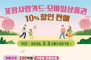경북팩트뉴스 남유신 기자 | 포항시가 지역 경기 회복과 민생경제 안정을 위해 내달 3일부터 카드형·모바일 포항사랑상품권(포항사랑카드) 230억 원을 10% 할인된 금액으로 판매한다. 시는 이달까지 포항사랑상품권 830억 원 발행한 데 이어, 이번 할인 판매분 230억 원 추가 발행으로 올해 연초에만 총 1,060억 원 규모의 포항사랑상품권을 유통하게 된다. 골목상권과 전통시장에 집중 공급해 지역 상권 소비를 촉진하고, 민생경제 회복을 이어간다는 취지다. 이번 할인 판매는 2월과 같은 10% 할인율이 적용되며, 개인 구매 한도는 월 40만 원, 보유 한도는 70만 원이다. 시민들의 가계 부담을 덜고 소상공인 매출 증대에도 실질적인 도움이 될 것으로 기대된다. 포항사랑카드 충전은 3월 3일 0시 15분부터 ‘iM샵 앱’ 또는 지역 내 104개 판매 대행 금융기관 영업점을 통해 가능하다. 카드 판매 대행 금융기관 현황은 포항사랑상품권 홈페이지에서 확인할 수 있으며, 시는 시민 편의를 위해 판매대행점을 지속 확대해 나갈 계획이다. 포항사랑카드는 실물 카드 결제는 물론 ▲삼성페이 ▲네이버페이