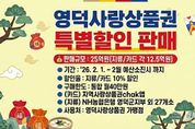 경북팩트뉴스 남유신 기자 | 영덕군은 설 명절을 앞두고 지역 상권 활성화와 소비 촉진을 위해 2월 1일부터 ‘영덕사랑상품권’을 10% 특별 할인 판매한다. 영덕군은 지난 1월 할인 판매의 높은 관심과 설 명절 수요를 반영해 2월 판매 규모를 기존의 두 배인 25억 원(지류·카드 각 12.5억 원)으로 확대했다. 다만, 보다 많은 이용자가 구매할 수 있도록 1인당 구매 한도를 월 40만 원으로 제한키로 했다. 상품권은 NH농협은행 영덕군지부를 포함한 관내 금융기관 28개 판매대행점에서 구매할 수 있으며, 카드형 상품권은 지역사랑상품권 chak앱을 통해 충전하거나 판매대행점에서 오프라인으로 충전할 수 있다. 황정기 일자리경제과장은 “설 연휴 기간 지역 소비를 촉진하고 더 많은 군민이 혜택을 누릴 수 있도록 25억 원 한도 내에서 할인 행사가 이뤄지는 만큼 예산이 소진되기 전 혜택을 누리시길 바란다”라고 전했다.