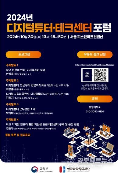 경북팩트뉴스 기자 | 교육부와 한국과학창의재단(이사장 조율래)은 10월 30일 피스앤파크컨벤션(서울)에서 ‘디지털튜터·테크센터 공개 토론회(포럼)’를 개최한다.