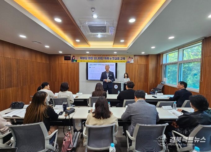 경북팩트뉴스 조현묵 기자 | 경북교육청은 8일 포항교육지원청 노을관 대회의실에서 2024년 교육환경평가 승인사업장 학부모 현장 모니터단 위촉식을 하고, 점검단 첫걸음 교육을 시행했다.