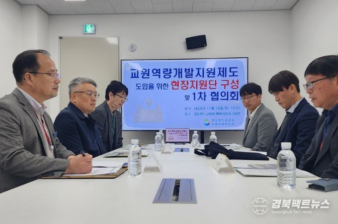 경북팩트뉴스 조현묵 기자 | 경북교육청은 19일 본청 행복지원동에서 교원역량개발지원제도 도입에 따른 후속 조치를 추진하기 위해 현장지원단을 구성하고, 1차 협의회를 개최했다.