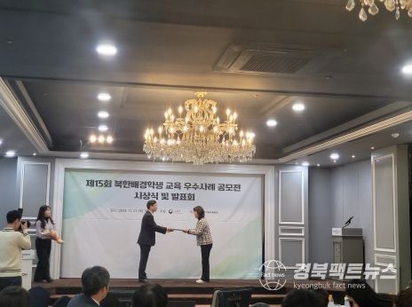 경북팩트뉴스 조현묵 기자 | 경북교육청은 교육부가 주최한 제15회 북한배경학생 교육 우수사례 공모전에서 이현주 하양여자중학교 교사가 최우수상(부총리 겸 교육부장관상-개인 중등부)을 수상했다고 21일 밝혔다.