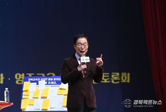 경북팩트뉴스 조현묵 기자 | 경북교육청은 25일 영주시에 있는 영주시민회관에서 ‘소통과 공감, 따뜻한 경북교육, 세계교육 표준으로 2024 봉화·영주교육 현장소통토론회’를 개최했다.