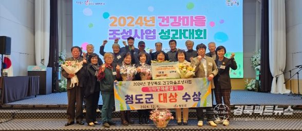 경북팩트뉴스 김영란 기자 | 청도군은 12월 6일 금요일 구미 금오산호텔에서 2024년 경상북도 건강마을 조성사업 성과대회에서 기억행복문열기(기행문) 시범사업 평가에서 청도군 각북면 건강마을이 영광의 대상을 수상했다.