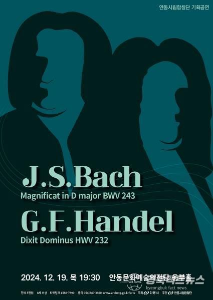경북팩트뉴스 김영란 기자 | 안동시립합창단이 12월 19일 오후 7시 30분, 안동문화예술의전당 웅부홀에서 연말을 맞아 특별 기획공연 ‘바흐의 마그니피캇과 헨델의 딕시트 도미누스’를 개최한다. 이번 공연에서는 바로크 음악의 거장이자 같은 해에 태어난 바흐와 헨델의 곡을 선보인다.