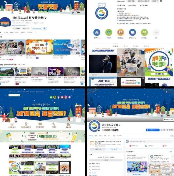경북교육청은 유튜브와 인스타그램, 페이스북, 블로그 등 총 4개의 공식 SNS 채널을 통해 온라인 강의자료 제공과 교육정책 홍보, 생생한 교육 현장 소개 등을 실시간 중계와 동영상, 게시글, 카드 뉴스 형태로 제공하고 있다.