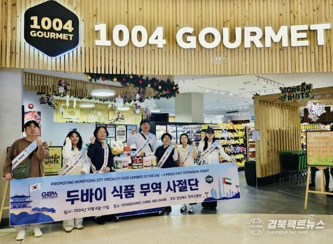경북팩트뉴스 김영란 기자 | 문경시는 지난 12월 7일부터 4일간 중동 농식품 시장 개척을 위해 두바이 대표 한인마트인 1004 Gourmet에 식품 무역사절단을 파견하여 판촉전과 구매 상담회를 성공적으로 개최했다.