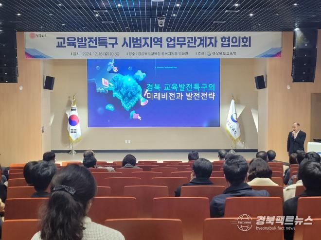경북팩트뉴스 조현묵 기자 | 경북교육청은 16일 본청 행복지원동 연화관에서 도내 13개 교육발전특구 시범지역(포항, 김천, 안동, 구미, 영주, 영천, 상주, 경산, 칠곡, 예천, 봉화, 울진, 울릉)의 지자체와 교육지원청 관계자 60여 명이 참석한 가운데 ‘교육발전특구 업무관계자 협의회’를 개최했다.