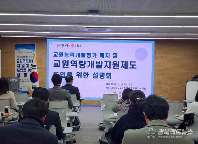 경북팩트뉴스 조현묵 기자 | 경북교육청은 17일 영덕군에 있는 경상북도교육청 영덕도서관 다목적홀에서 업무 담당 장학사와 교육연구사 등 46명을 대상으로 ‘교원역량개발지원제도 도입 후속 조치 지원 설명회’를 개최했다.