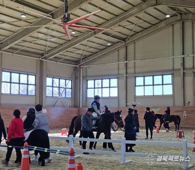 경북팩트뉴스 조현묵 기자 | 경북교육청은 상주시에 있는 국제승마교육센터에서 장애학생과 가족의 심리 정서 회복․가족 간의 친밀감 향상을 목표로 ‘2024 겨울 재활승마 캠프’를 개최했다고 20일 밝혔다.