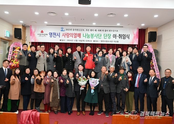 경북팩트뉴스 김영란 기자 | 사랑의 열매 영천시 나눔봉사단은 지난 19일 영천시립도서관 지산홀에서 나눔봉사단원 및 내외빈 50여 명이 참석한 가운데 ‘사랑의 열매 영천시 나눔봉사단장 이취임식’을 개최했다.
