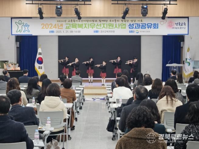 경북팩트뉴스 조현묵 기자 | 경북교육청은 21일 경산시에 있는 경산교육지원청 학생교육지원관에서 도내 117개 사업학교 학교장과 교육복지사 등 관계자 230여 명이 참석한 가운데 ‘2024년 교육복지우선지원사업 성과공유회’를 개최했다.