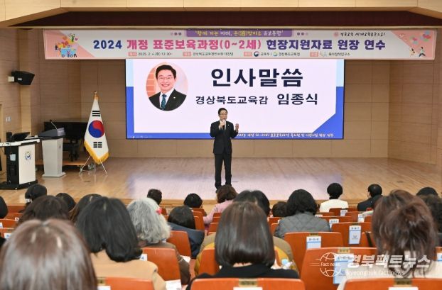 경북팩트뉴스 조현묵 기자 | 경북교육청은 4일 구미시에 있는 경상북도교육청연수원 대강당에서 유치원과 어린이집 원장 400여 명이 참석한 가운데, 개정 0-2세 표준보육과정의 현장 안착을 지원하기 위한 연수를 개최했다.