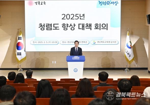 경북팩트뉴스 조현묵 기자 | 경북교육청은 5일 본청 연화관에서 본청 부서별 부패취약분야 담당자와 22개 교육지원청 행정지원과장, 업무 담당과 담당자 등 80여 명이 참석한 가운데 ‘2025년도 청렴도 향상 대책 회의’를 개최했다.