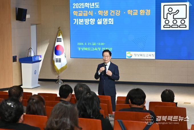경북팩트뉴스 조현묵 기자 | 경북교육청은 21일 본청 행복지원동 연화관에서 도 교육청과 교육지원청 급식․보건․환경 관련 업무 담당자 120여 명이 참석한 가운데 ‘2025학년도 학교급식․건강․환경관리 기본 방향 설명회’를 개최했다.