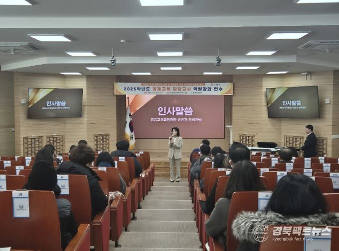 경북팩트뉴스 조현묵 기자 | 경북교육청은 24일 구미시에 있는 경상북도교육청연수원에서 도내 초․중․고등학교 경제교육 담당 교사 70여 명을 대상으로 ‘2025학년도 경제교육 담당 교사 역량 강화 연수’를 개최했다.