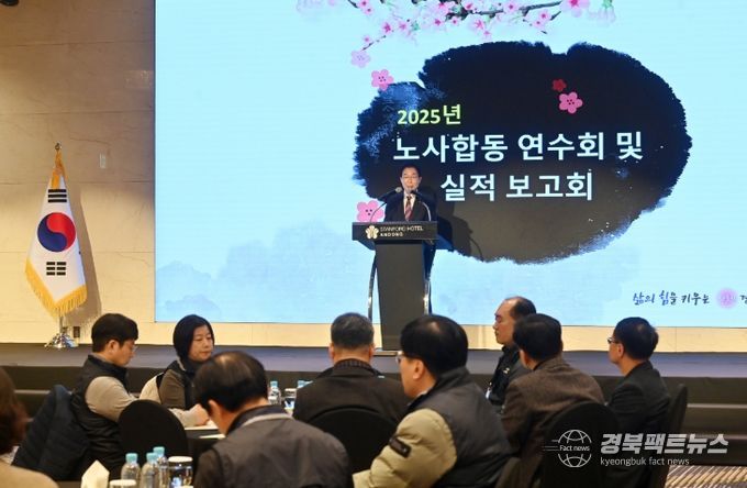 경북팩트뉴스 조현묵 기자 | 경북교육청은 25일 안동시에 있는 스탠포드호텔 안동 1층 그랜드볼룸에서 ‘2025 경상북도교육청-경상북도교육청공무원노동조합 노사 합동 연수회 및 실적보고회’를 개최했다.