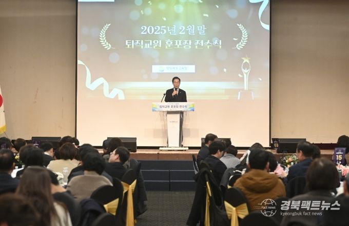 경북팩트뉴스 조현묵 기자 | 경북교육청은 26일 경주시에 있는 더케이호텔 경주 거문고홀에서 ‘2025년 2월 말 퇴직 교원 훈․포장 전수식’을 개최했다.