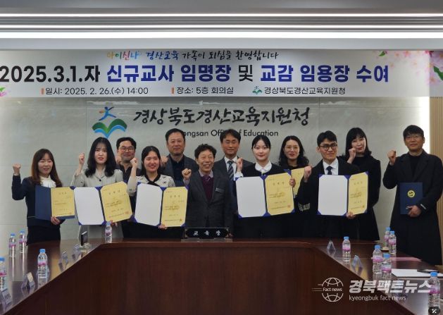 경북팩트뉴스 조현묵 기자 | 경상북도경산교육지원청은 2025년 2월 26일 교육지원청 5층 회의실에서 2025년 3월 1일자로 임용되는 관리직 교육공무원 임용장과 신규교사 임명장을 수여했다.