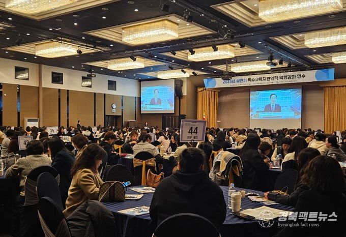 경북팩트뉴스 조현묵 기자 | 경북교육청은 27일 경주시에 있는 더케이호텔 경주에서 도내 특수교육지원인력 345명(특수교육실무사 334명, 특수학교 생활지도원 11명)을 대상으로 ‘2025년 상반기 특수교육지원인력 역량 강화 연수’를 개최했다.