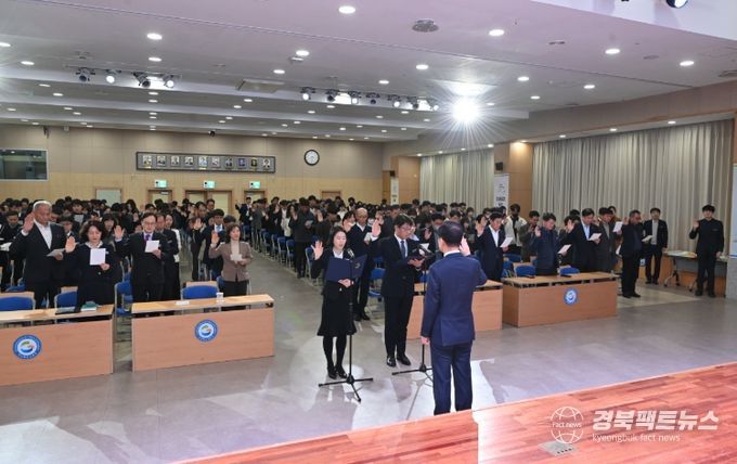 경북팩트뉴스 조현묵 기자 | 경북교육청은 4일 본청 웅비관에서 직원 250여 명이 참석한 가운데 ‘반부패 청렴 실천 결의 및 청렴 서약식’을 개최했다.