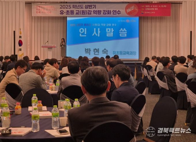 경북팩트뉴스 조현묵 기자 | 경북교육청은 9일부터 10일까지 이틀간 경주시에 있는 더케이호텔 경주에서 도내 유・초등 교(원)감 450여 명을 대상으로 ‘2025학년도 유・초등 교(원)감 역량 강화 연수’를 개최했다고 밝혔다.
