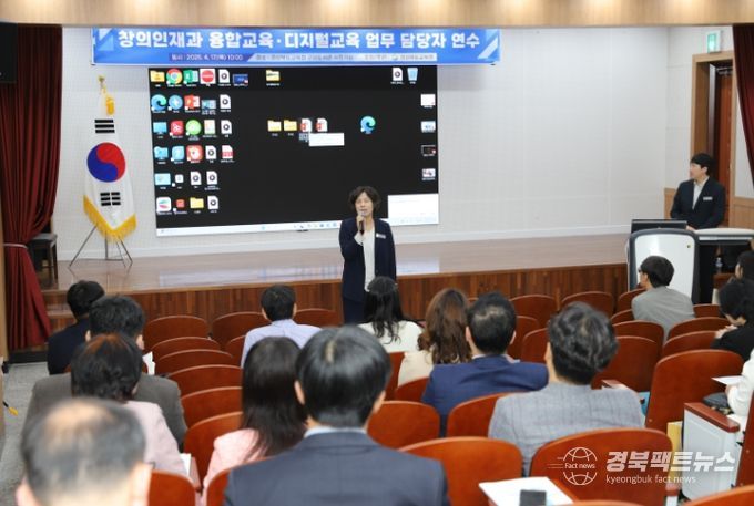 경북팩트뉴스 조현묵 기자 | 경북교육청은 17일 구미시에 있는 경상북도교육청 구미도서관에서 창의인재과 업무 담당 교육전문직원 20여 명을 대상으로 ‘2025학년도 상반기 창의인재과(융합교육담당, 디지털교육담당) 업무 담당자 연수’를 개최했다.