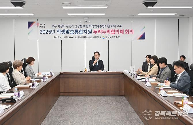 경북팩트뉴스 조현묵 기자 | 경북교육청은 21일 본청 행복지원동 304호 회의실에서 경북경찰청과 지역사회 관계기관 등 다양한 복지 사업 관계자 50여 명이 참석한 가운데 학생맞춤통합지원 체계 구축을 위한 ‘두리누리협의체 회의’를 개최했다.