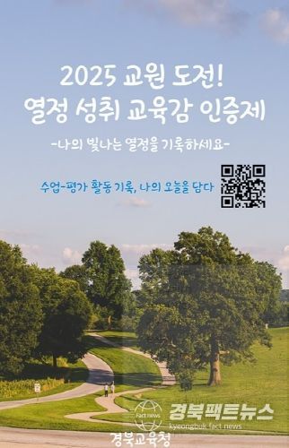 경북팩트뉴스 조현묵 기자 | 경북교육청은 교원의 자율적인 성장과 전문성 강화를 위해 ‘2025 교원 도전! 열정 성취 교육감 인증제’를 본격적으로 추진한다고 22일 밝혔다.