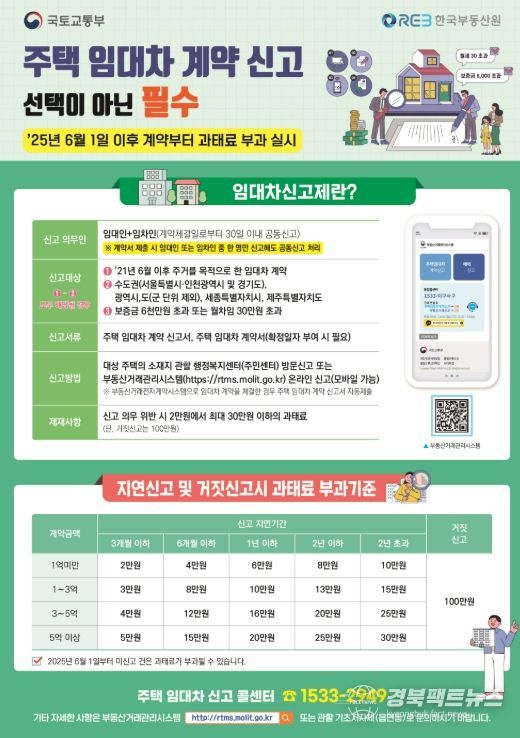 경북팩트뉴스 조현묵 기자 | 영주시는 ‘주택 임대차 신고제’ 계도기간이 오는 5월 31일 종료됨에 따라, 6월 1일부터 체결되는 계약부터 신고 의무 위반 시 과태료를 부과한다고 밝혔다.