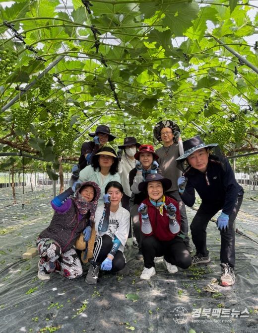 경북팩트뉴스 조현묵 기자 | 김천시 봉산면은 본격적인 농번기를 맞아 인력 부족으로 어려움을 겪고 있는 지역 농가를 돕기 위해 5월 21일 봉산면 소재 포도 재배농가를 찾아 농촌일손돕기 활동을 펼쳤다.