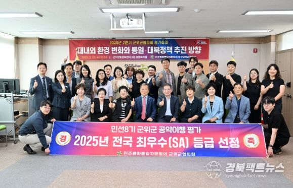경북팩트뉴스 조현묵 기자 | 지난 21일 민주평화통일자문회의 군위군협의회(협의회장 이우석)는 군위 생활문화센터 회의실에서 김진열 군수, 자문위원 등 30명이 참석한 가운데‘대내외 환경 변화와 통일・대북정책 추진 방향’을 주제로‘2025년 2분기 정기회의’를 개최했다.