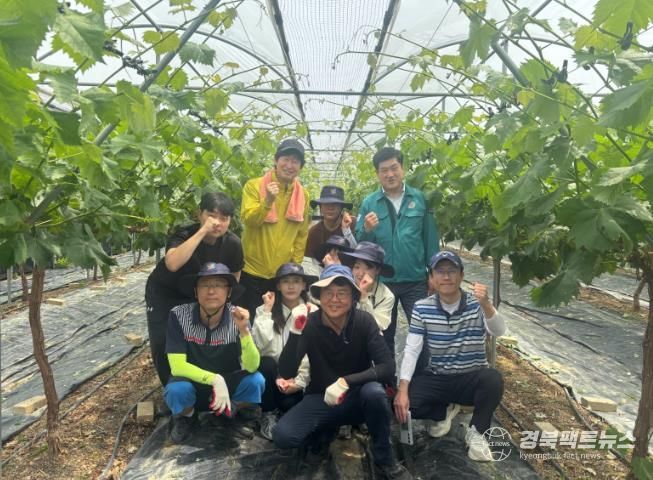 이날 임재춘 복지기획과장을 비롯한 직원 11명은 개령면 황계리 소재의 포도 재배 농가를 방문해 포도 순 따기 및 잡초 제거 등 농작업을 도우며 구슬땀을 흘렸다.